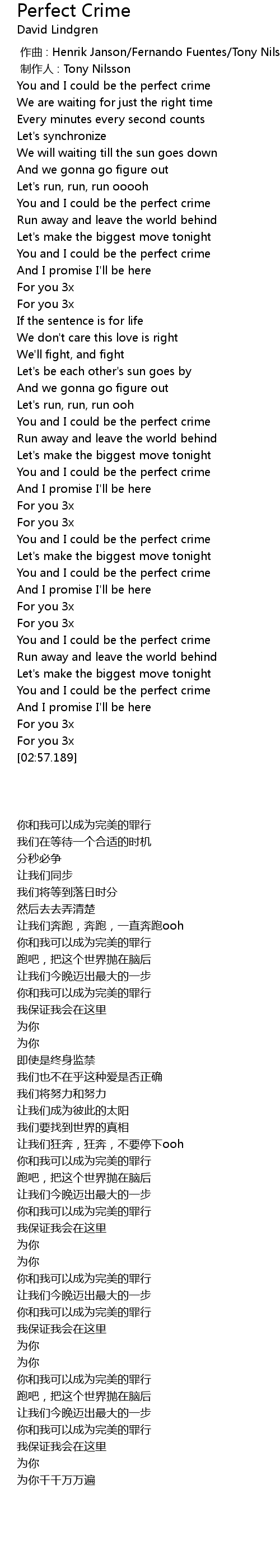 | [00:00.000] | zuò qǔ : Henrik Janson Fernando Fuentes Tony Nilsson |