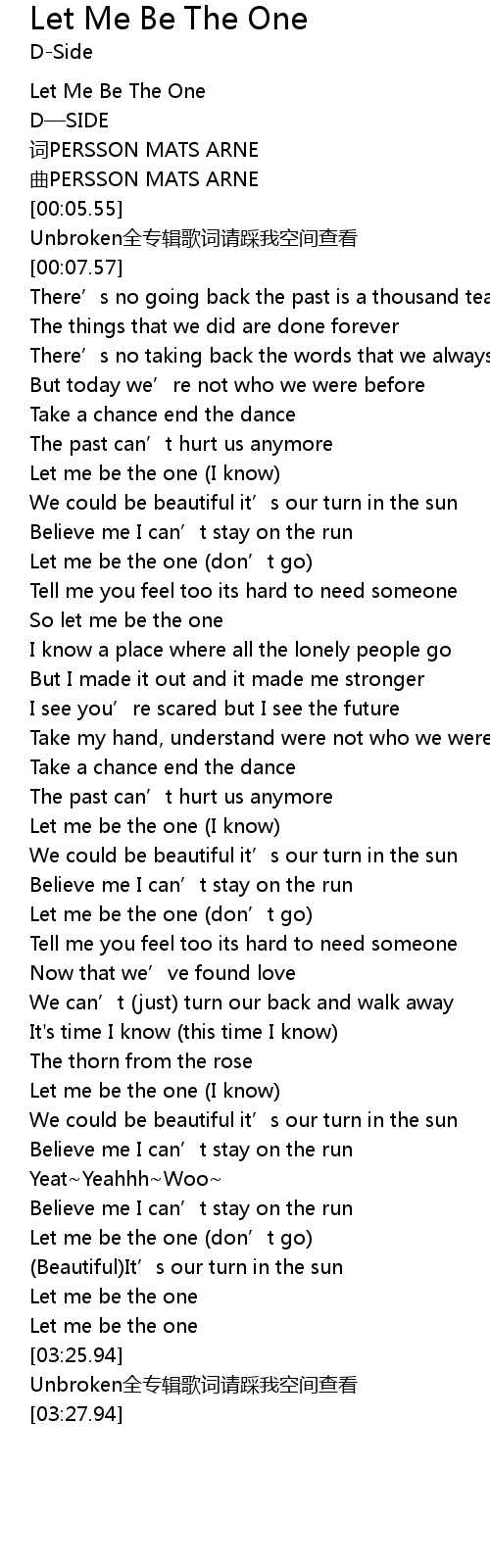 | [03:20.19] | Let me be the one |