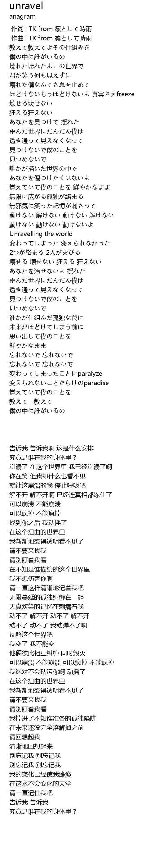 | [00:00.000] | 作词 : TK from 凛として時雨 |