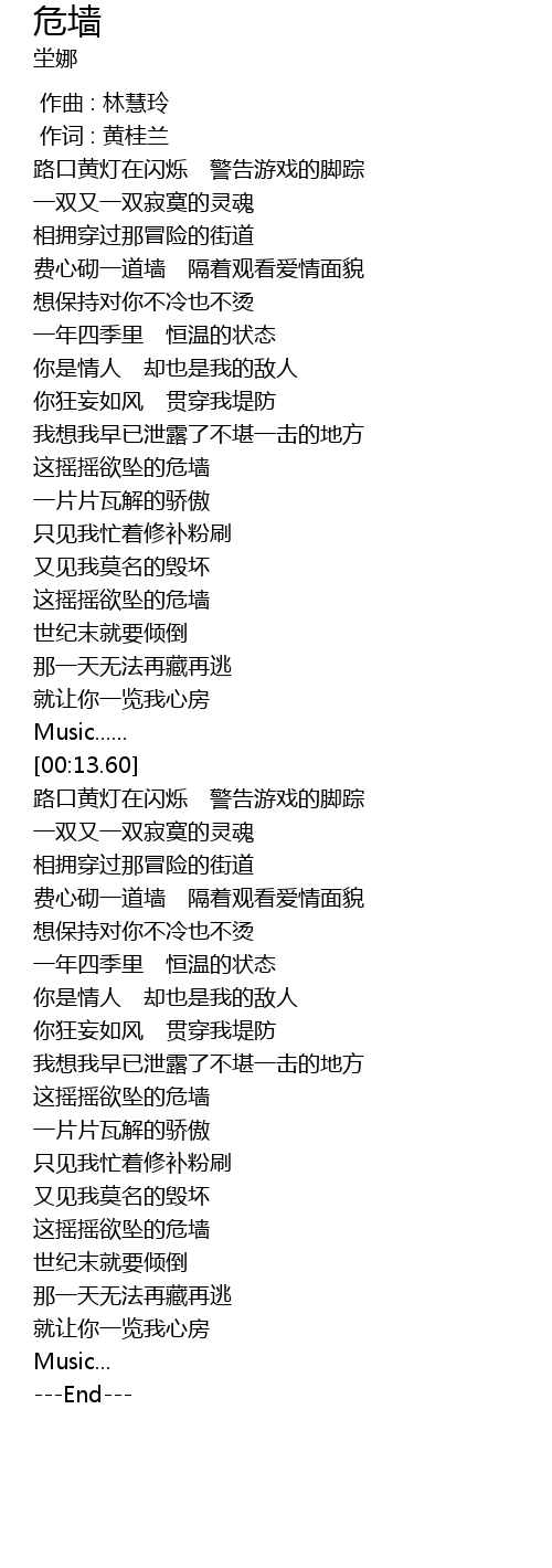 | [01:28.66] | 这摇摇欲坠的危墙 |