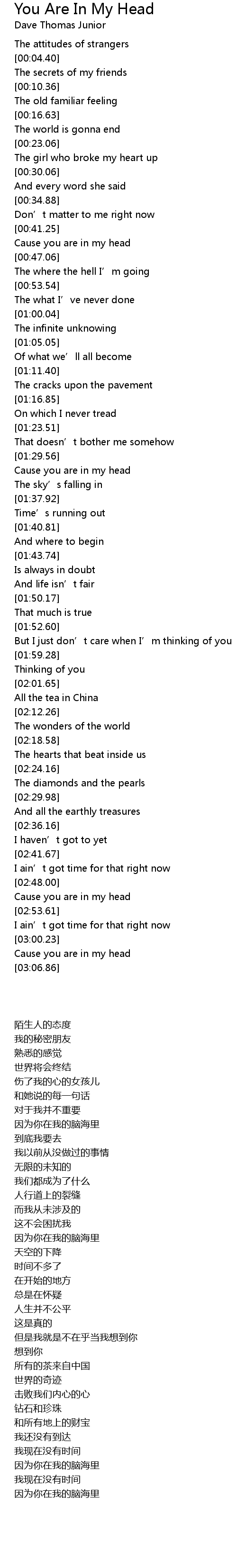 | [03:02.10] | Cause you are in my head |