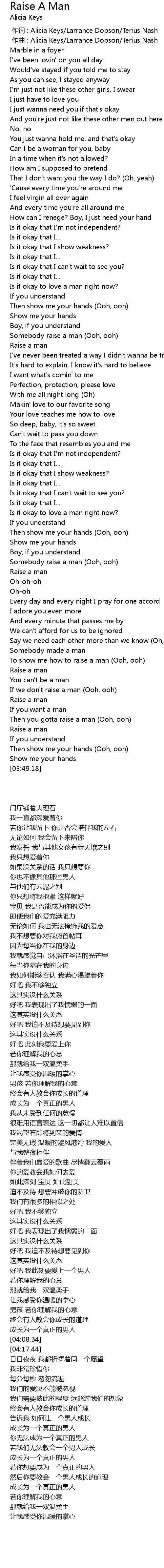 | [05:31.49] | Then you gotta raise a man Ooh, ooh |