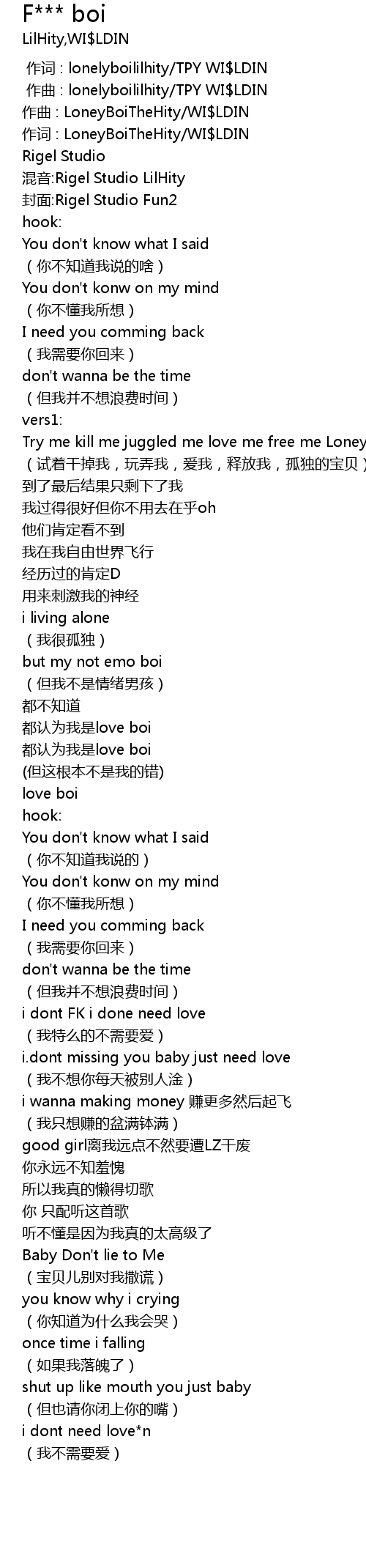 | [00:04.799] | zuò cí : LoneyBoiTheHity WI LDIN |