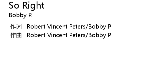 | [00:00.000] | 作词 : Robert Vincent Peters/Bobby P. |