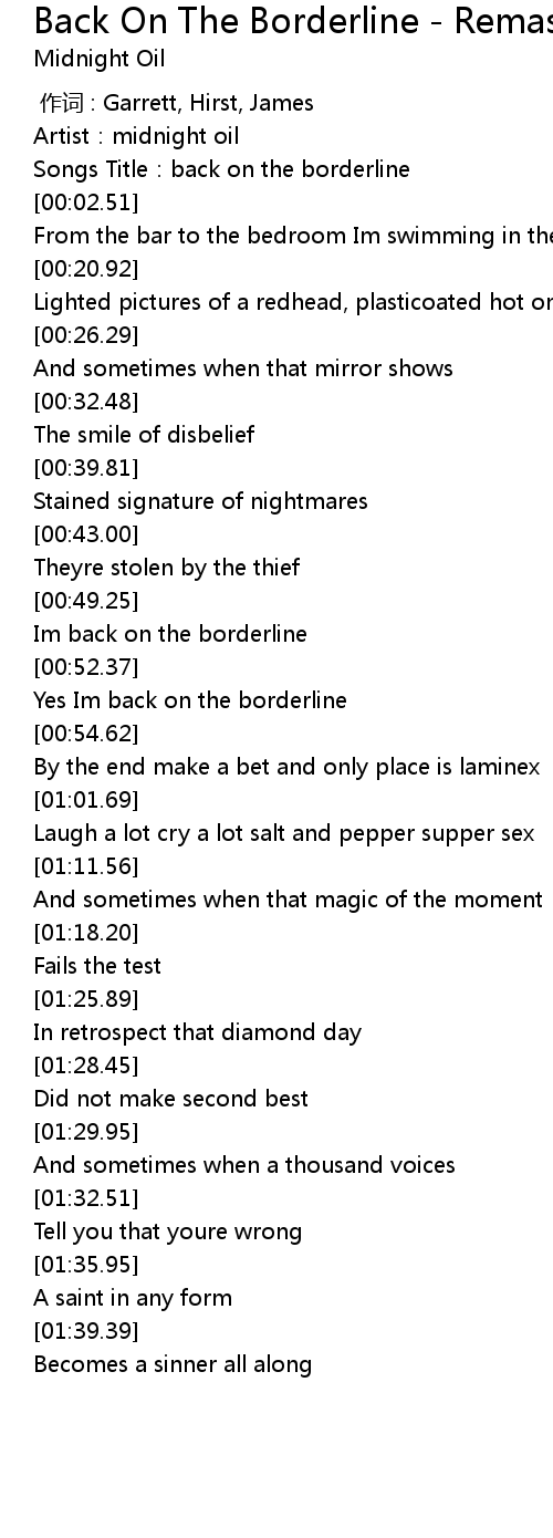 | [00:53.49] | Yes Im back on the borderline |