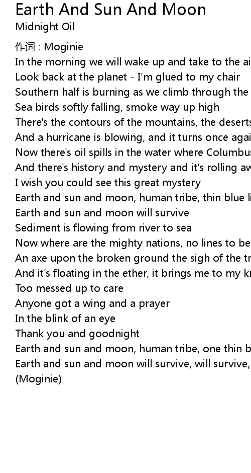 | Song | Earth And Sun And Moon |
