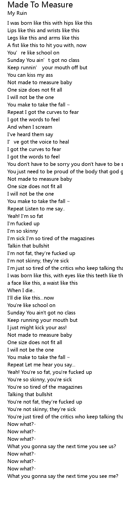 | Song | Made To Measure |