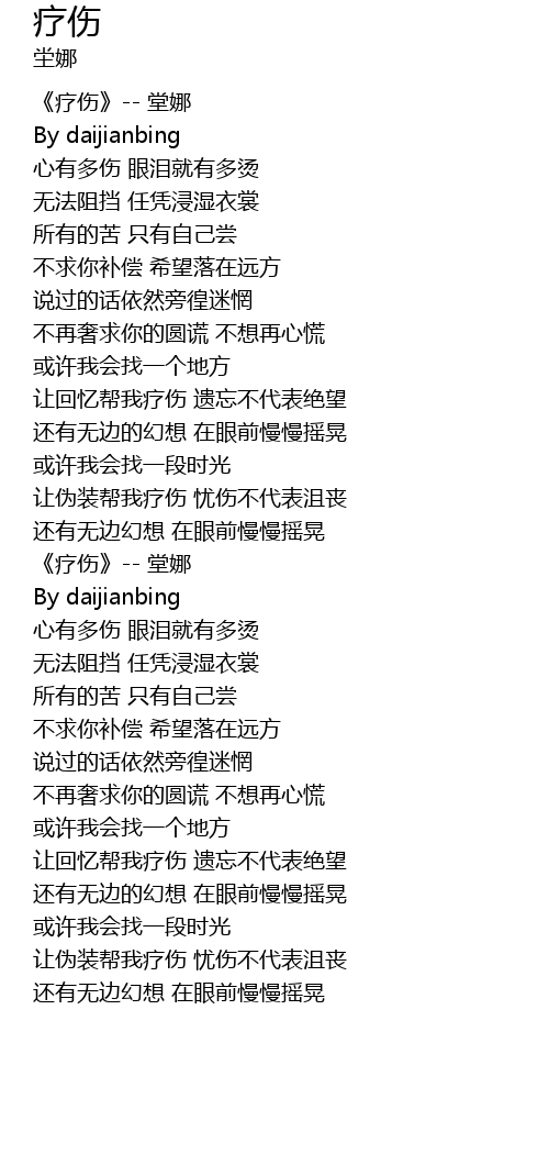 | [00:09.86] | 《疗伤》-- 堂娜 |