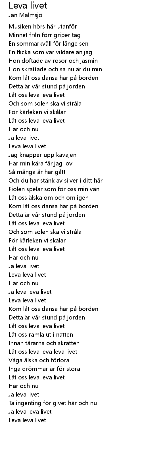 | [00:36.56] | Låt oss leva leva livet |