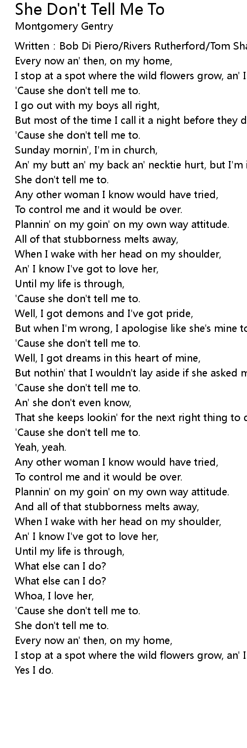 | She don' t tell me to. | |