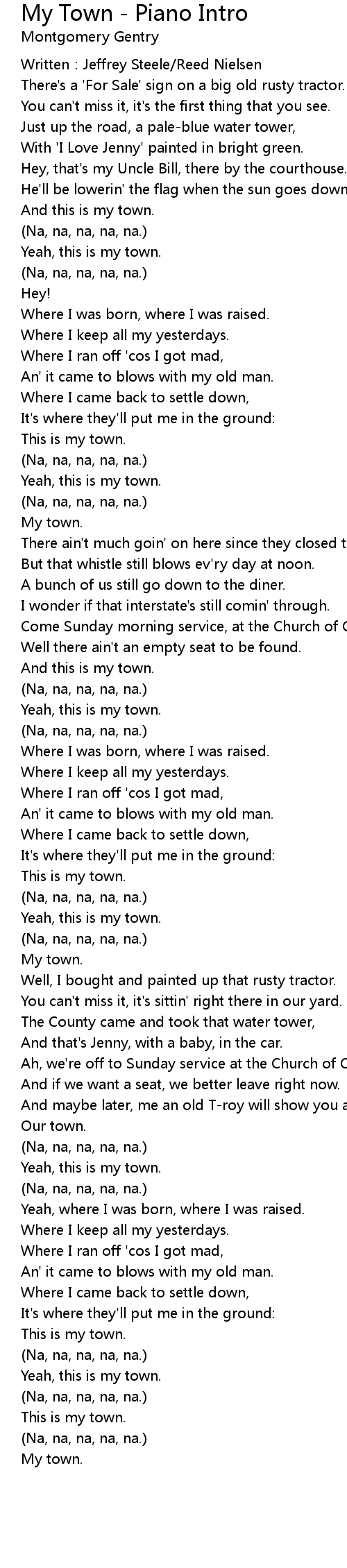 | Song | My Town - Piano Intro |