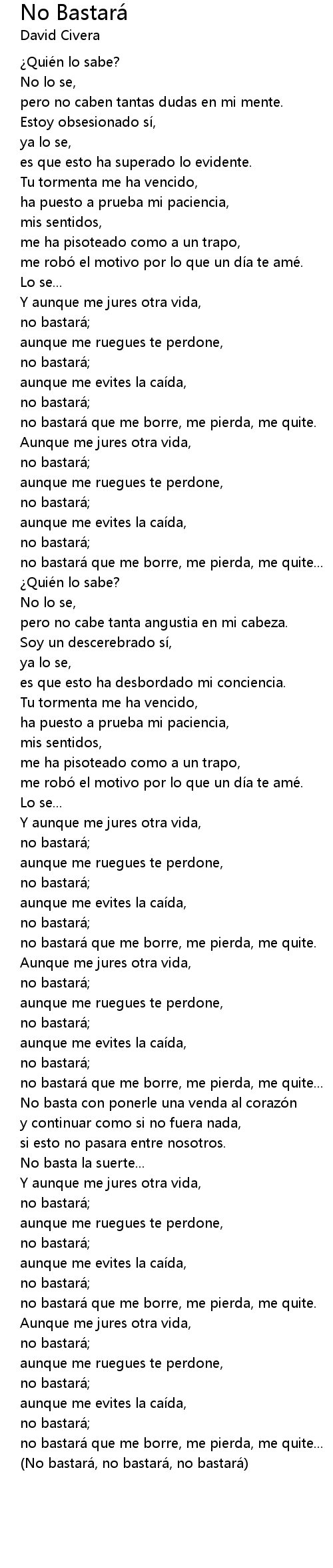 | Song | No Bastará |