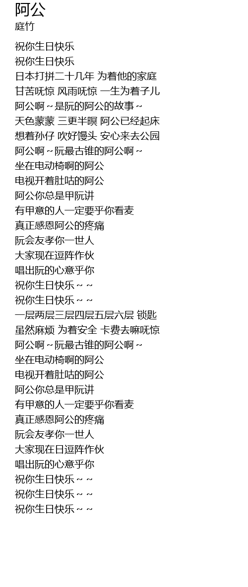 | [01:45.08] | 阿公啊~阮最古锥的阿公啊~ |