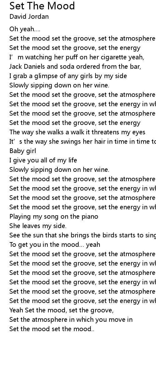 | Set the mood set the groove, set the atmosphere in which you move in, | |