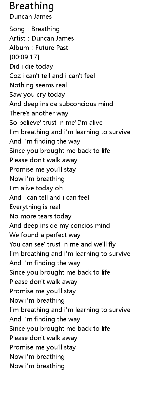| [00:41.20] | I' m breathing and i' m learning to survive |