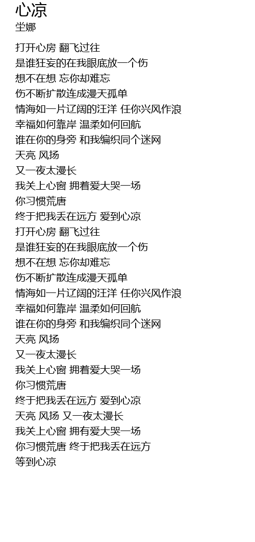 | [03:34.460] | 等到心凉 |