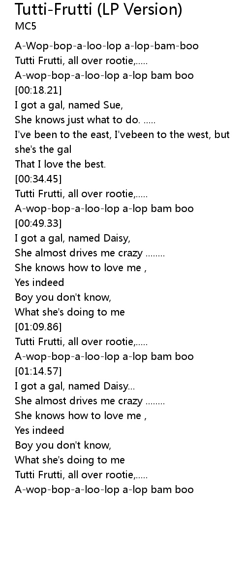 [00:03.21] Tutti Frutti, all over rootie,.....