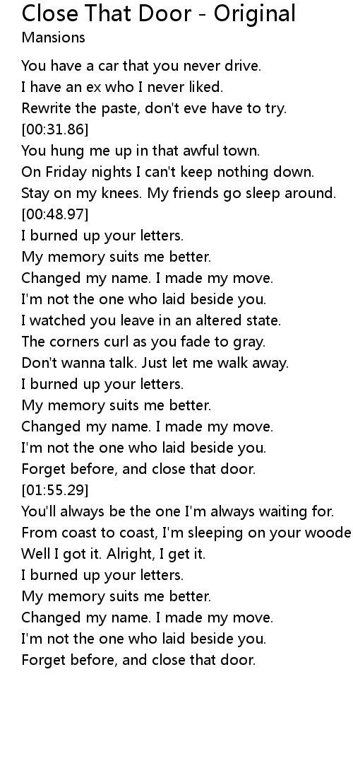 Forget before, and close that door. |