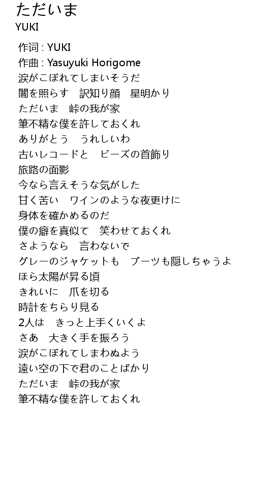 | [00:01.000] | zuò qǔ : Yasuyuki Horigome |