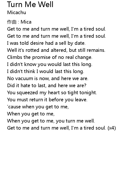 | Get to me and turn me well, I'm a tired soul. (x4) |