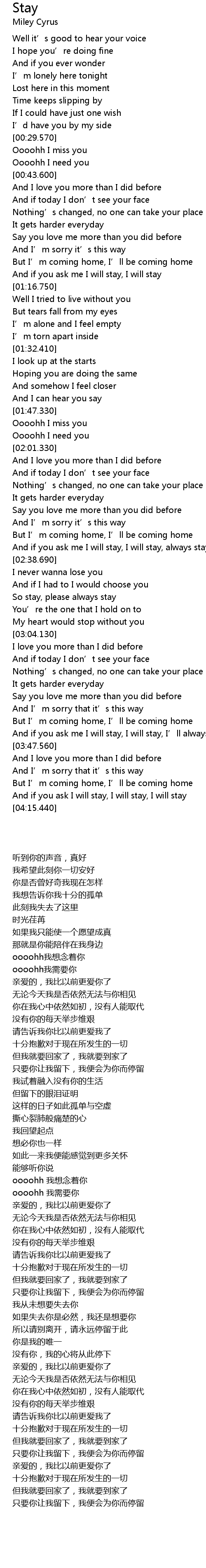| [03:30.850] | And if you ask me I will stay, I will stay, I' ll always stay |