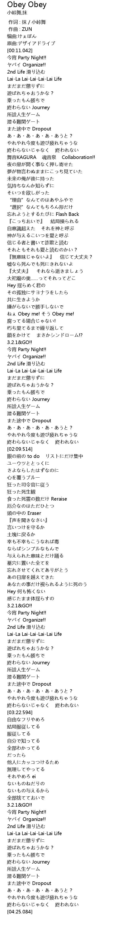 | [01:29.334] | ねぇ Obey me! そう Obey me! |
