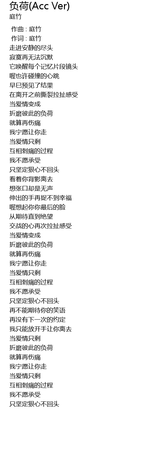 | [00:01.00] | 作词 : 庭竹 |