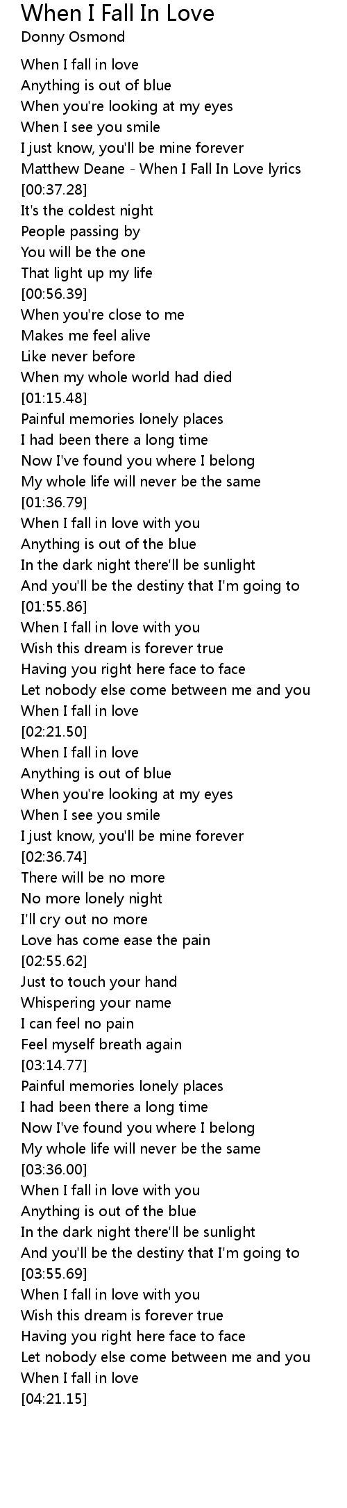 Matthew Deane - When I Fall In Love lyrics |