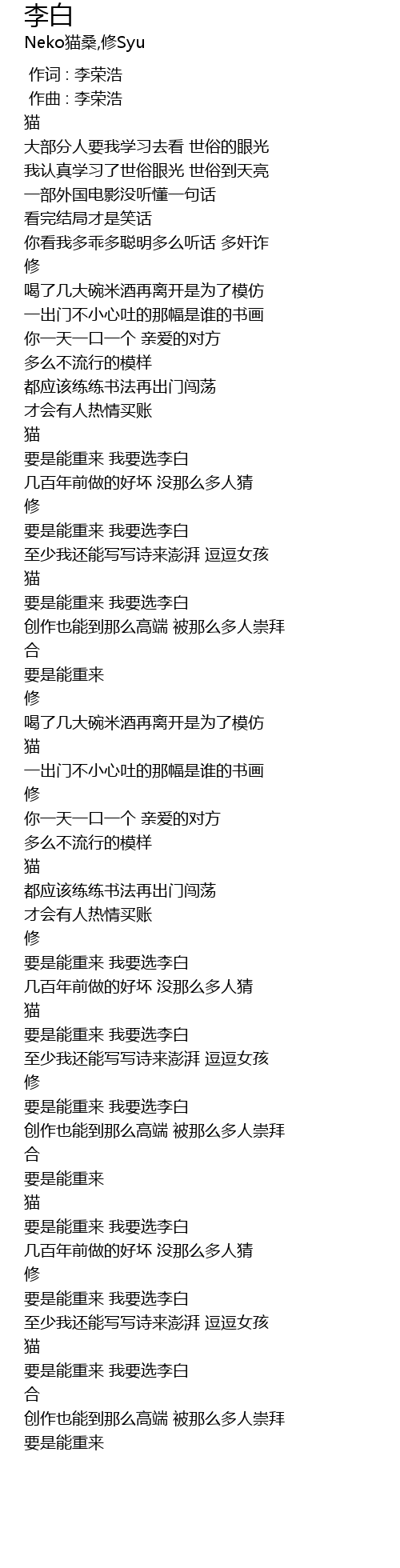 | [00:00.000] | 作词 : 李荣浩 |