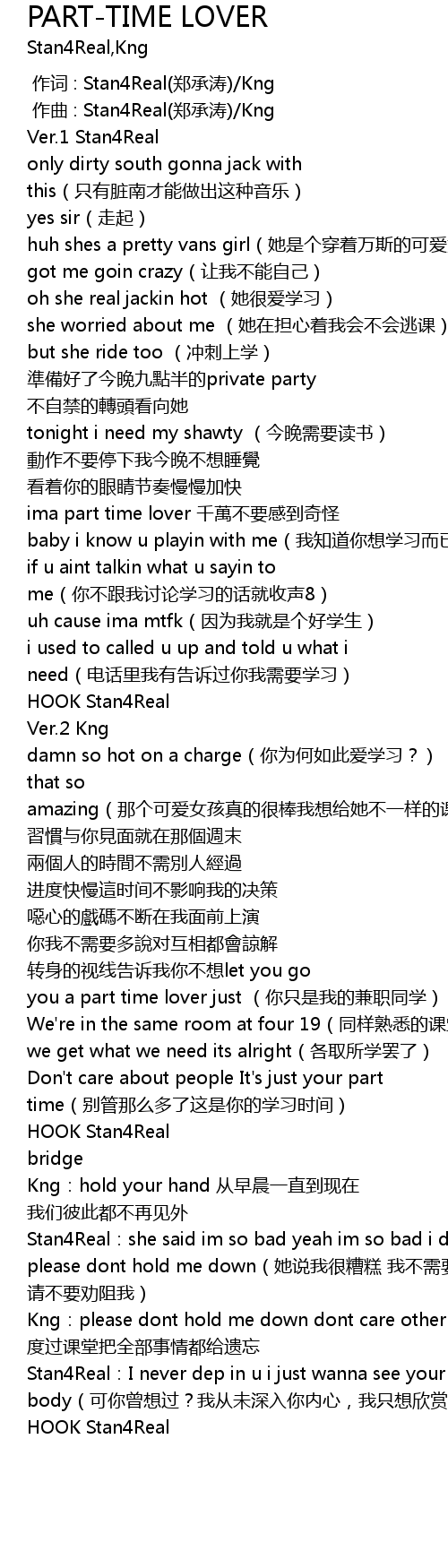 | [00:37.114] | ima part time lover 千萬不要感到奇怪 |