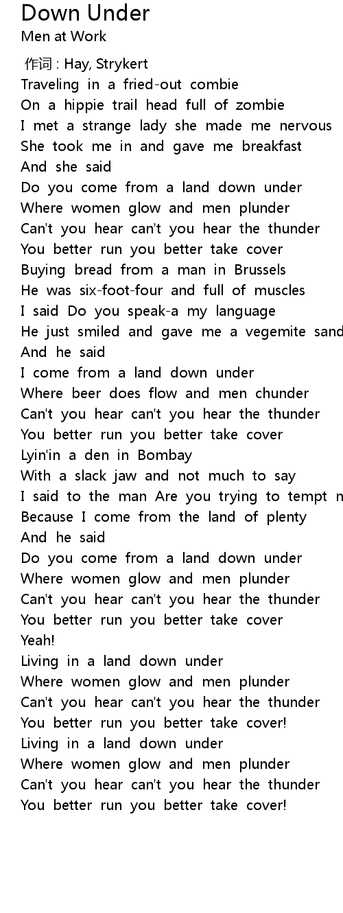 | [02:41.987] | Can' t you hear can' t you hear the thunder |