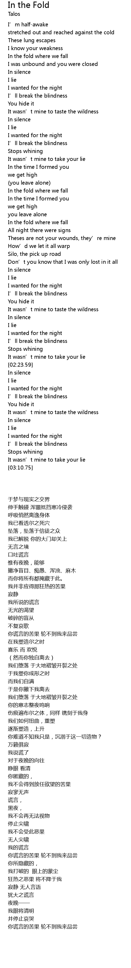 | [01:29.44] | In the fold where we fall |