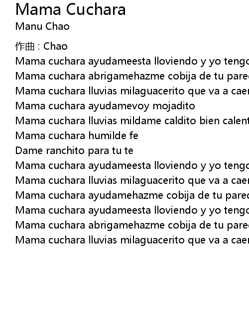 | Mama cuchara ayudamehazme cobija de tu pared | |