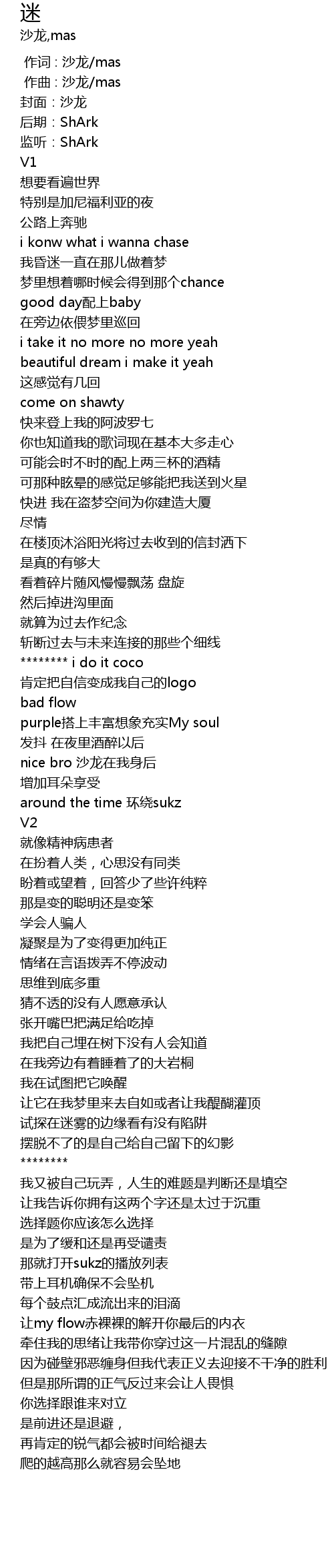 | [00:00.000] | 作词 : 沙龙/mas |