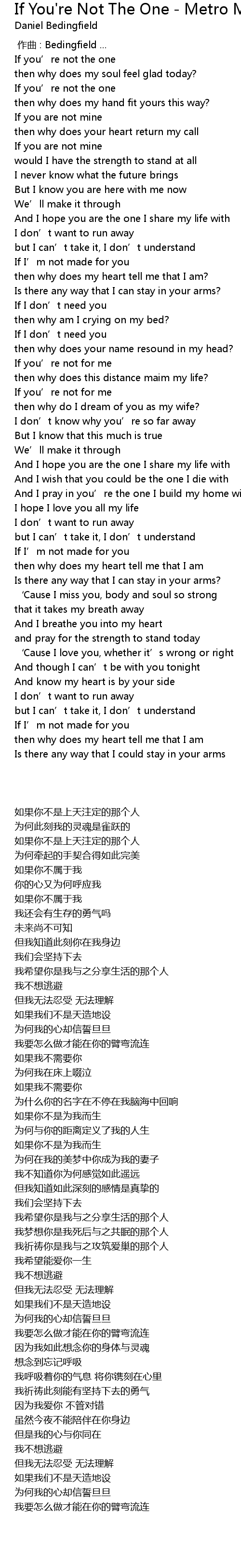 | [00:09.960] | If you' re not the one |