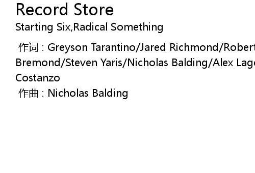 | [00:00.000] | 作词 : Greyson Tarantino/Jared Richmond/Robert Stewart/Ryan Bremond/Steven Yaris/Nicholas Balding/Alex Lagemann/Josh Hallbauer/Michael Costanzo |