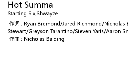 | [00:00.000] | 作词 : Ryan Bremond/Jared Richmond/Nicholas Balding/Robert Stewart/Greyson Tarantino/Steven Yaris/Aaron Smith |