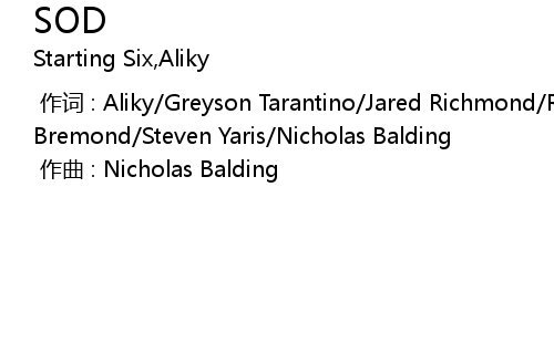| [00:00.000] | 作词 : Aliky/Greyson Tarantino/Jared Richmond/Robert Stewart/Ryan Bremond/Steven Yaris/Nicholas Balding |