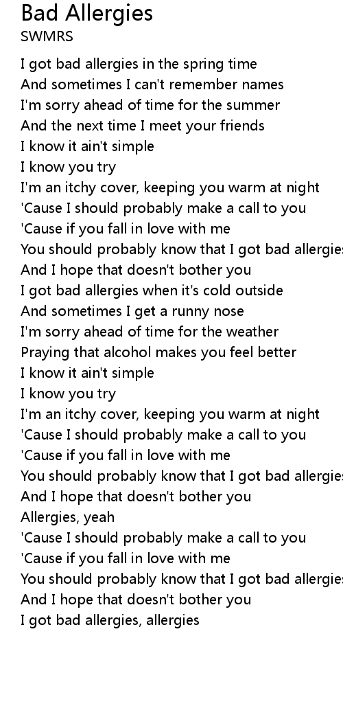 I got bad allergies, allergies |