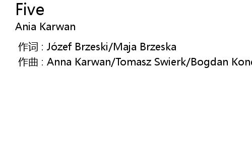 | [00:00.000] | zuo qu : Anna Karwan Tomasz Swierk Bogdan Kondracki |