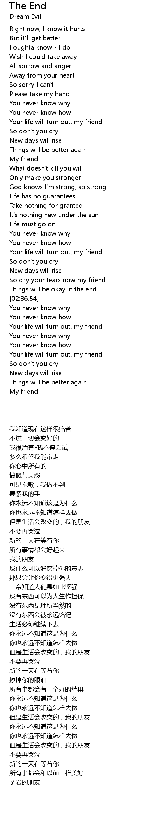 So dry your tears now my friend |