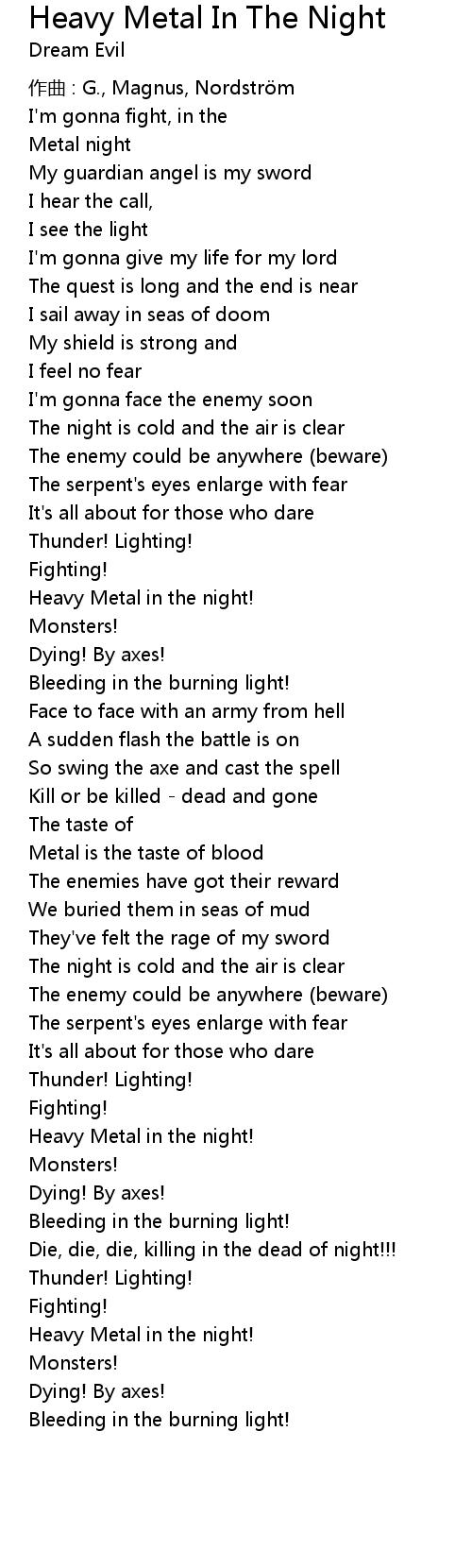 | Song | Heavy Metal In The Night |