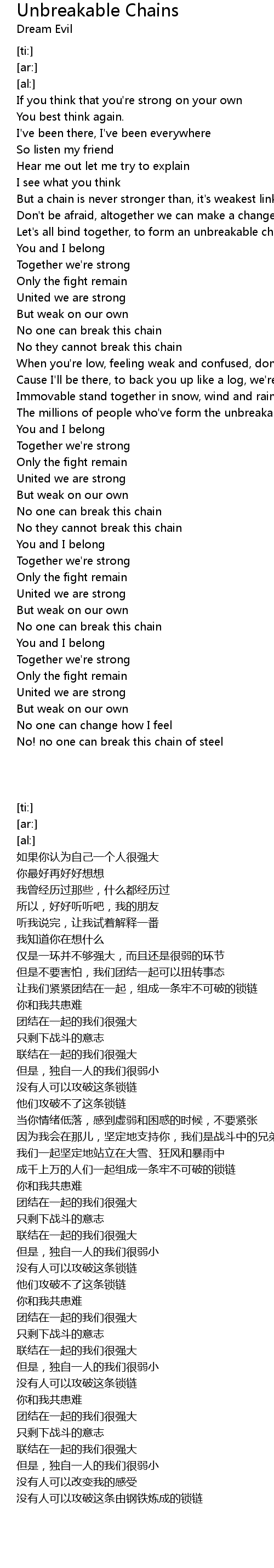 Let's all bind together, to form an unbreakable chain |