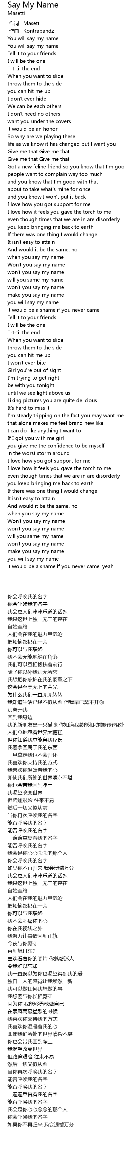 | Song | Say My Name |