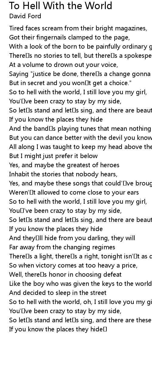 | So to hell with the world, I still love you my girl, | |