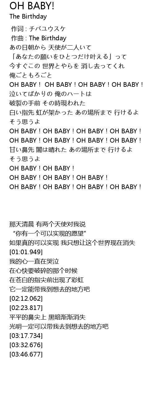 | [02:12.062] | OH BABY!OH BABY!OH BABY!OH BABY! |