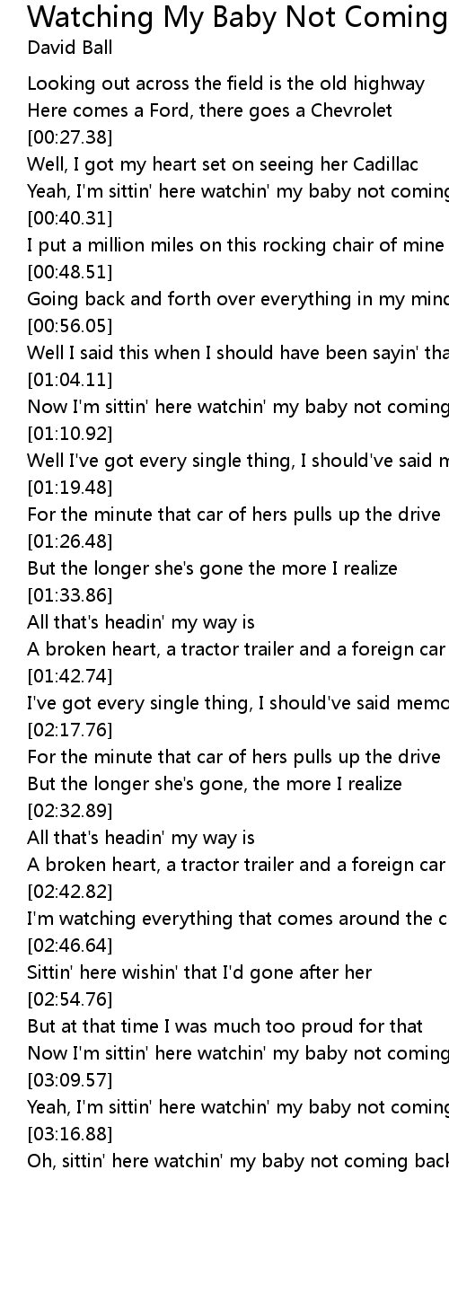 Yeah, I'm sittin' here watchin' my baby not coming back |