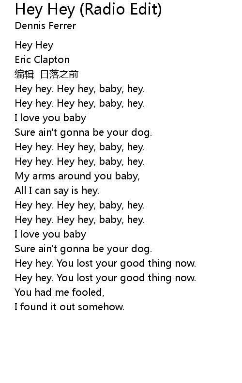 | [00:44.82] | Hey hey. Hey hey, baby, hey. |