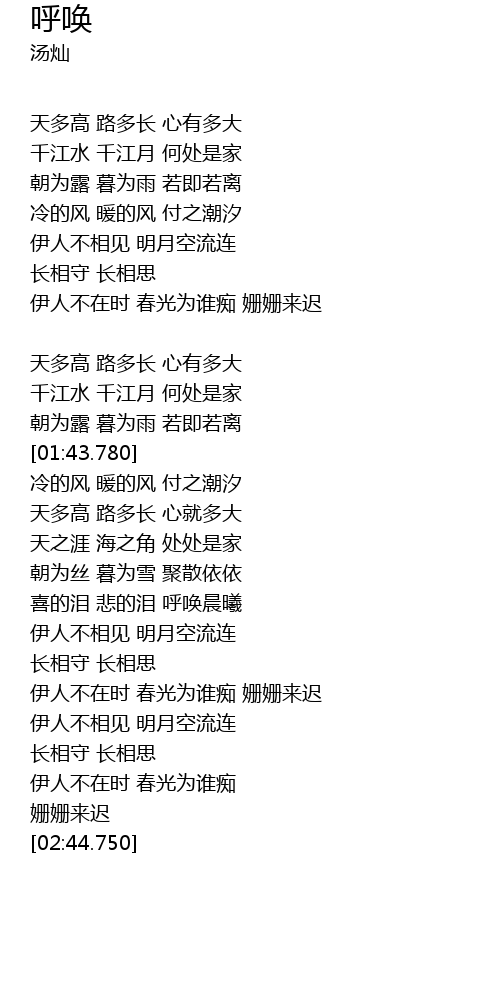 | [01:55.320] | tian duo gao lu duo zhang xin jiu duo da |