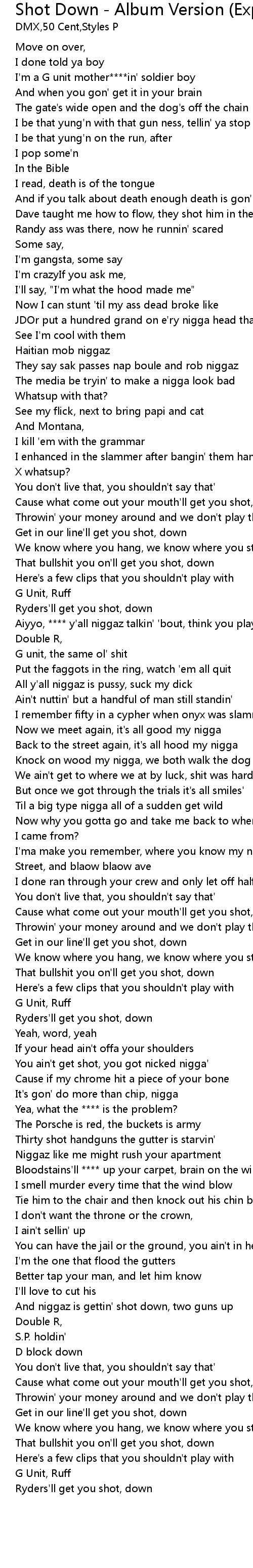 | Cause what come out your mouth'll get you shot, down | |